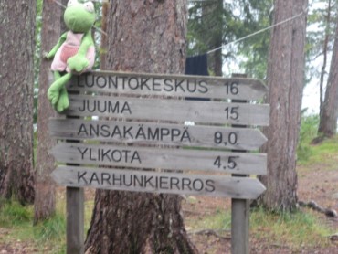 Wir wollten in diesem Urlaub neben der Bärenrunde auch noch etwas mit dem Kajak unterwegs sein. In der Vorbereitung hatte ich deshalb versucht einen Anlaufpunkt in Kuusamo zu finden, wo wir unsere Boote per Post hinschicken konnten. Wir entschieden uns dann für das Hotel Kuusamo Portti. Es hat dann auch alles geklappt. Die Verschickung per DHL Paket war nichtmal sonderlich teuer. Wir hatten dann nur noch das Problem für Sergej ein Kajak zu mieten. Nach mehreren Telefonanrufen ist uns das auch gelungen. Gleichzeitig konnten wir den Transport des Gepäcks und der beiden anderen Kajaks organisieren. Vor dem Start mussten dann erstmal mein und Annettes Boot aufgebaut werden.