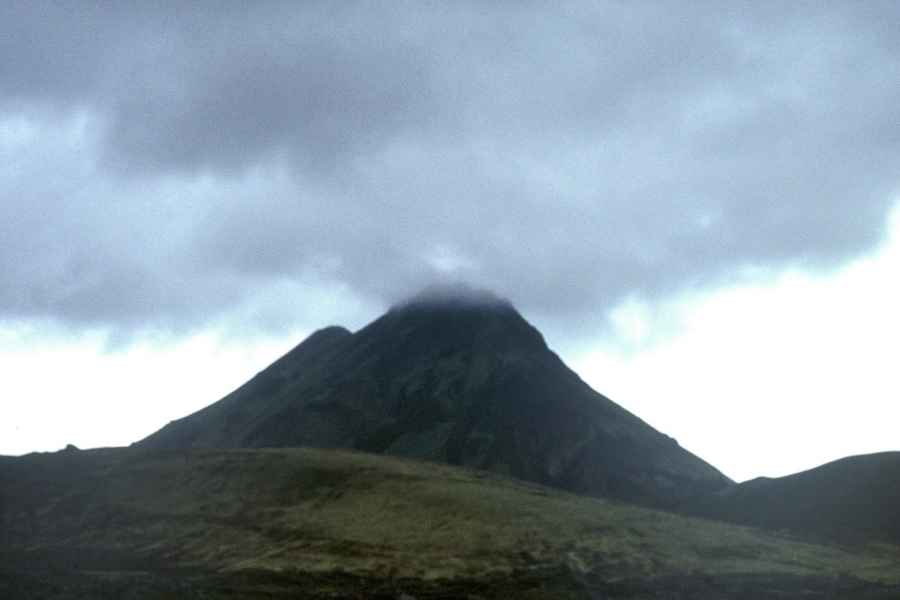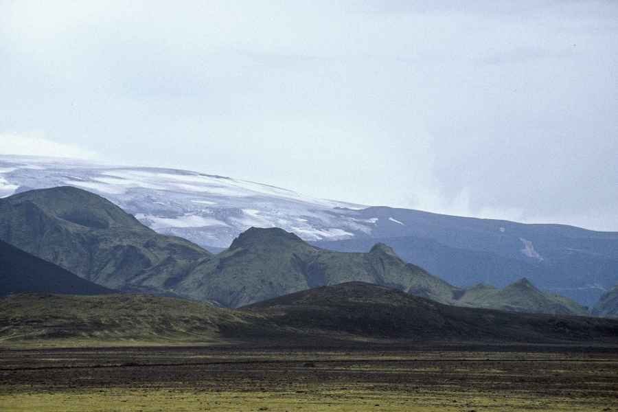 We spent the night in font of the hut, at almost 1200m. By the time we had set up our tent in face of a gathering storm, we were frozen through and through. It was hours before we were warm again. By far our worst experience during this tour of Iceland and Greenland was with the woman in charge of this hut. Because our guidebook said that one could cook in the hut, we had decided to save weight - and possible problems with the security personnel on our flight to Greenland - by not carrying a stove and fuel. And now we were told that the hut was full, and only those who stayed overnight in the hut could cook there. Frozen to the bones and tired out, we felt rather frustrated. Later, we were condescendingly given some hot water.