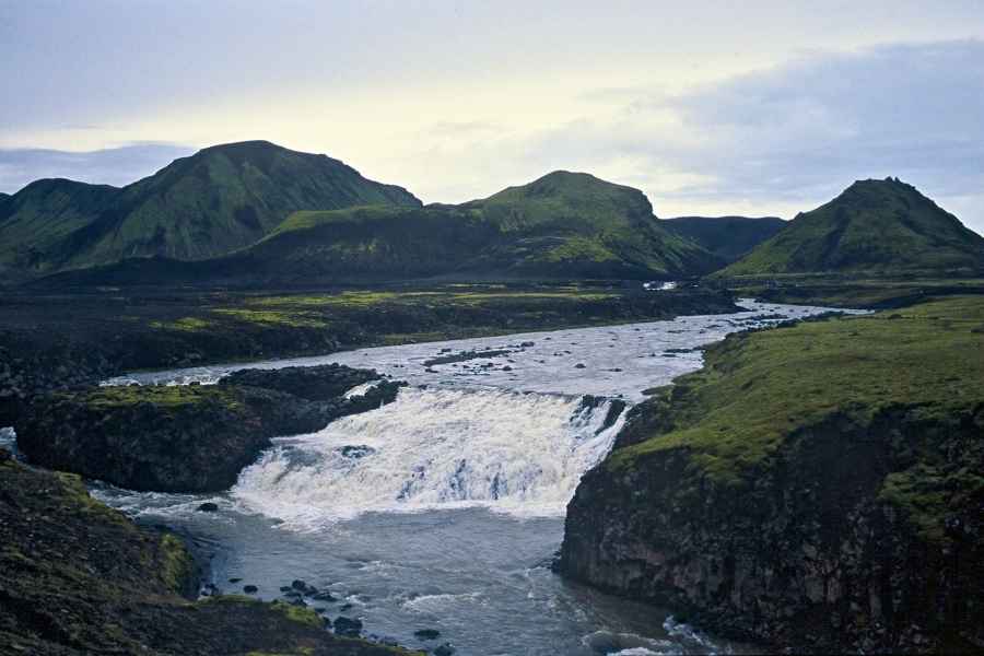 The song goes 'Eine Seefahrt die ist lustig ….'('A trip on the sea is merry') - but that is nothing compare with a bus journey from the Icelandic highlands to Reykjavik. The bus stopped in front of the hut in Hvangil, we get in and the bus driver accepts our tickets for the journey Porsmörk - Reykjavik without any questions. Probably, he simply told himself that a ticket is a ticket, and his English was not much better than our (non-existent) Icelandic. So this solution suited both sides. He could set off. Doors to, turn the ignition key and ….nothing happens. The same procedure once again … nothing. A short jerk of the gear lever, the bus begins to roll down the hill / slope - and the engine starts. The drive across the jeep track can begin. The passing scenery is magnificent. Glaciers alternate with blue or grey rivers and green mountain ridges. The speed at which our driver drives through glacial rivers is impressive - and that with one hand holding his mobile phone. Travelling in the No. 13 bus is a real experience!