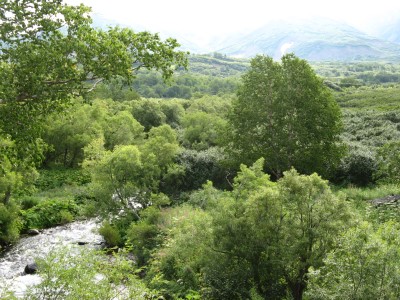 Der zweite Wandertag begann wieder recht schweißtreibend. Denn es ging von Anfang an bergauf. Bereits an der ersten Rasthütte war ich ziemlich erschöpft und von hier aus, sollten es noch zwanzig Kilometer sein. Weiter das Tal hinauf zog der Weg alle Register: schlecht markiert, hohes Gras, Wege die in den Fluß abgerutscht waren ... Nachdem wir vier Stunden bergauf gegangen waren, war keine weitere Markierung zu finden. Wir befanden uns auf einem Schneefeld und konnten nicht erkennen, wo es weitergehen sollte. Nach mehreren Versuchen, den Weg zu finden, gaben wir auf und gingen zur letzten Hütte zurück. Einige Zeit nach dem Abendessen kam ein russischer Wanderer aus der Gegenrichtung, auf seiner Digitalkamera zeigte er uns Bilder von dem Schneefeld, auf dem wir aufgegeben hatten. Wir waren also doch auf dem richtigen Weg!