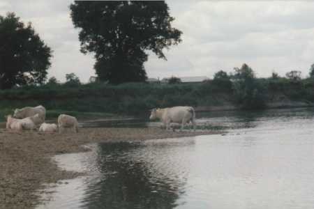 Weisse Kühe im Fluß