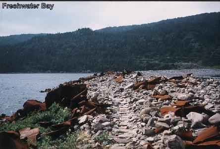 Weiter ging es durch eine Meeresbucht, auf einem Damm aus riesigen angeschwemmten Steinen. Auf dem Damm liegen viele Schiffswracks, die hier angeschwemmt wurden. Hier liegt ein Schornstein, dort Teile einer Schiffsschraube, weiter hinten große Deckplatten...Zwischen hier und St. Johns sollen noch 180 Schiffswracks auf dem Meeresboden liegen. Nach dem Damm ging es wieder aufwärts und in den Wald hinein. In der Nähe eines Bergbaches schlugen wir unser Zelt für diese Nacht auf. Über das winzige Bächlein führte sogar eine Holzbrücke (die erste auf diesem Trail). Weiter unten soll dieses Bächlein sogar einen Wasserfall nähren. Der nächste Morgen begann heiß. Schon beim Frühstück Schweißperlen auf der Nase (und das Ende August in einem Land, von dem ich dachte, es sei kalt) Weiter ging es über die Holzbrücke und durch den Wald. Oft konnte man auf die Küste sehen, nach Norden Richtung Fort Amherst. Endpunkt dieser Etappe ist Blackhead, ein kleines Fischerdorf. Von dort trampten wir nach St. Johns zurück. Nachdem wir uns ausgeruht hatten, starteten wir eine kleine Tour durch den Hafen. Dort konnten wir lesen, dass heute Finnwale und Delfine gesehen wurden. Wir haben leider keine Wale und auch keine Eisberge gesehen. Aber wir werden wiederkommen. Nicht nur wegen der Wale und Eisberge und nicht nur wegen der großartigen Landschaft. Sondern vor allem wegen der Menschen, ihrer Freundlichkeit und selbstverständlichen Hilfsbereitschaft, die es uns ermöglichte, einen wunderschönen Urlaub in diesem wunderschönen Land zu verbringen.